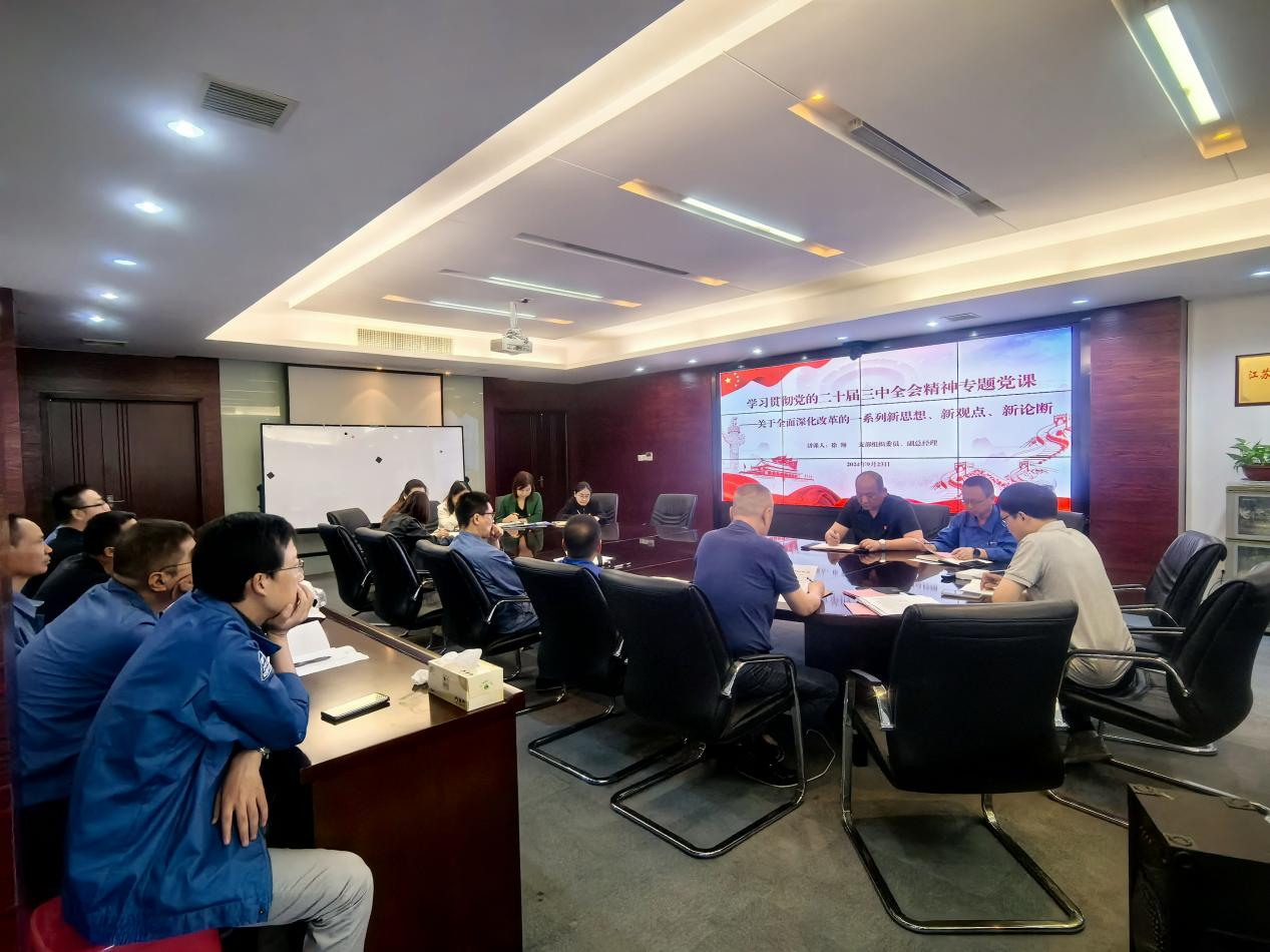 公司支部組織委員、副總經(jīng)理徐翔結(jié)合學(xué)習(xí)貫徹黨的二十屆三中全會(huì)精神的有關(guān)工作要求,為全體黨員講授了一堂題為《黨的二十屆三中全會(huì)中關(guān)于全面深化改革的一系列新思想、新觀點(diǎn)、新論斷》的專題黨課。黨課從十個(gè)方面深入淺出地解讀了關(guān)于黨中央全面推進(jìn)深化改革的重大現(xiàn)實(shí)意義和深遠(yuǎn)歷史意義。
